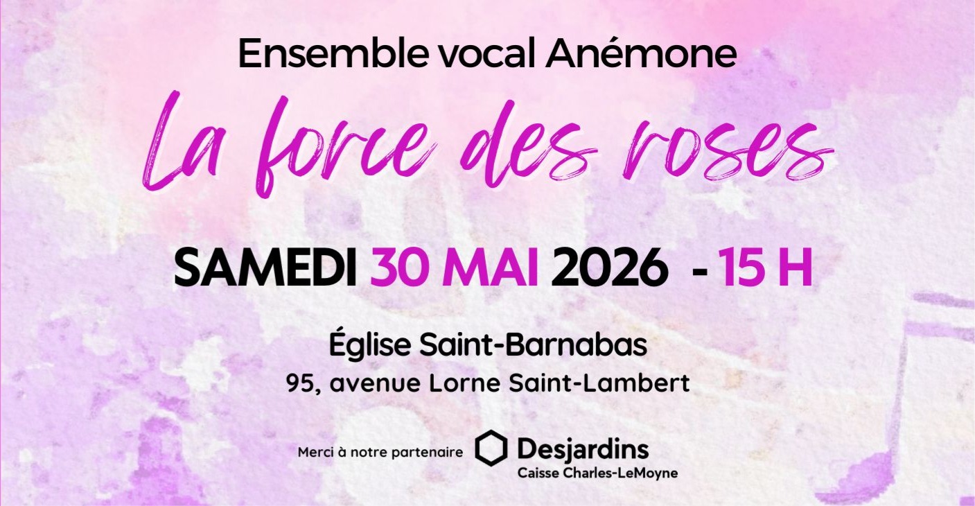 L’ensemble vocal Anémone se produira aussi en concert le samedi 30 mai 2026 à 15 h,